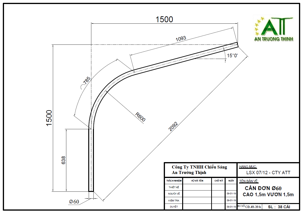 Bản Vẽ Cần Đèn Đơn D60 ATT-D02