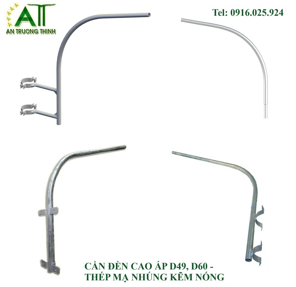 Cần Đèn Chiếu Sáng Cao Áp Phi D49, D60 Thép Mạ Kẽm Nhúng Nóng
