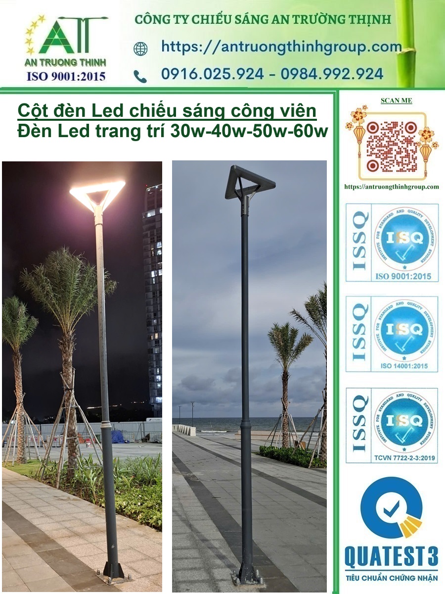 Cột Đèn Led Chiếu Sáng Công Viên 3m, 4m, Đèn Led 30w 40w 50w 60w