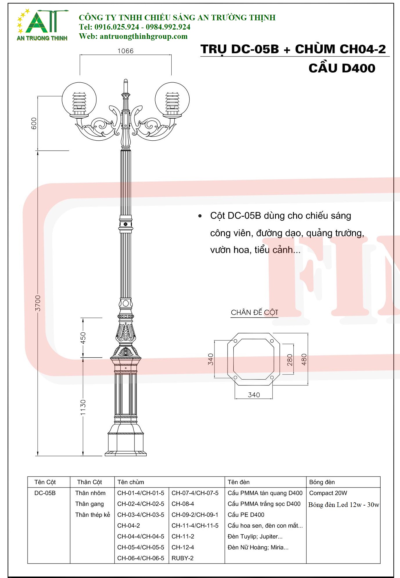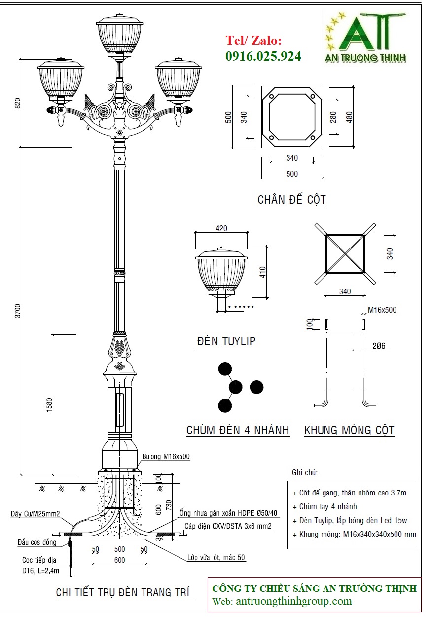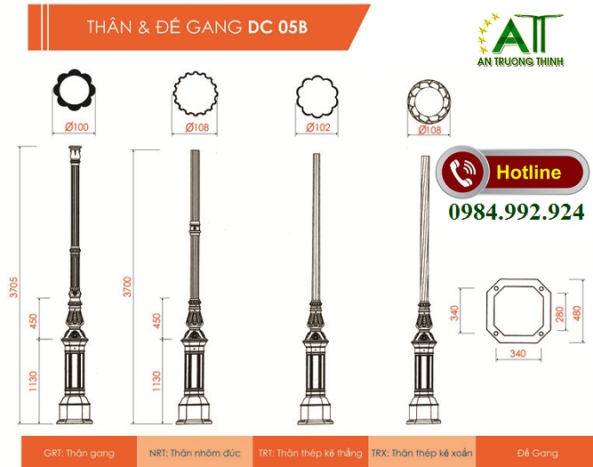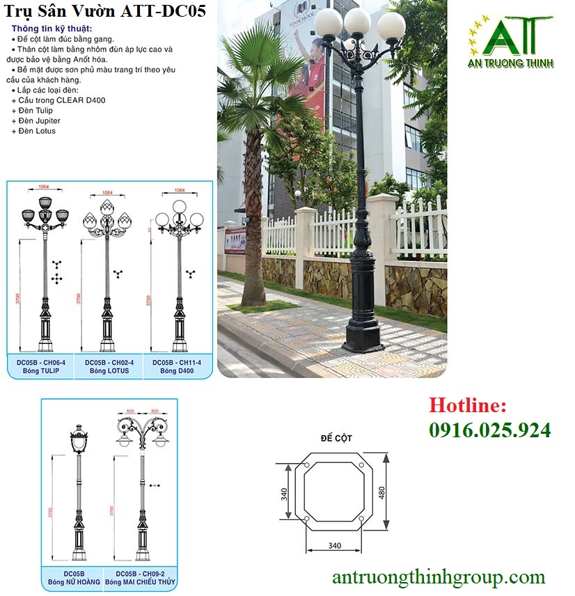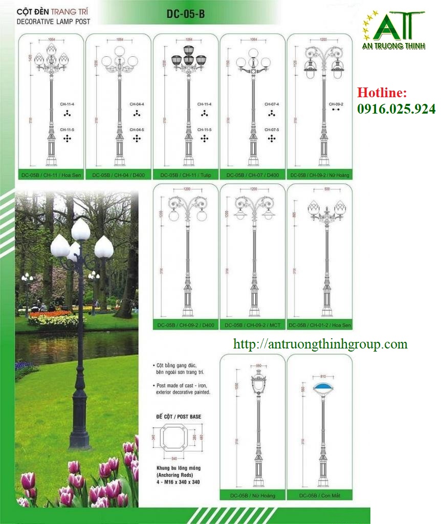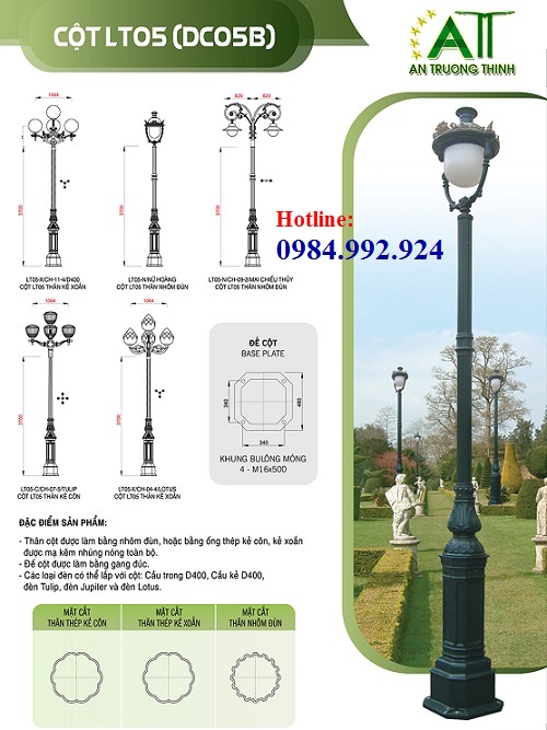 Công ty chiếu sáng An Trường Thịnh đơn vị chuyên sản xuất cung cấp trụ đèn chiếu sáng công cộng, trụ đèn chiếu sáng trang trí sân vườn, trụ đèn chiếu sáng trang trí công viên đô thị, trụ đèn đế được đúc bằng gang, bằng nhôm chất lượng.