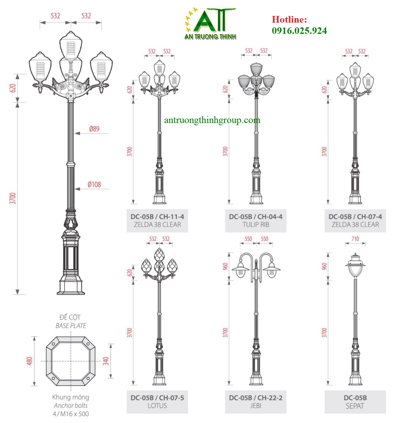 + Thân đèn có chiều cao đa dạng, theo nhu cầu Quý khách hàng: