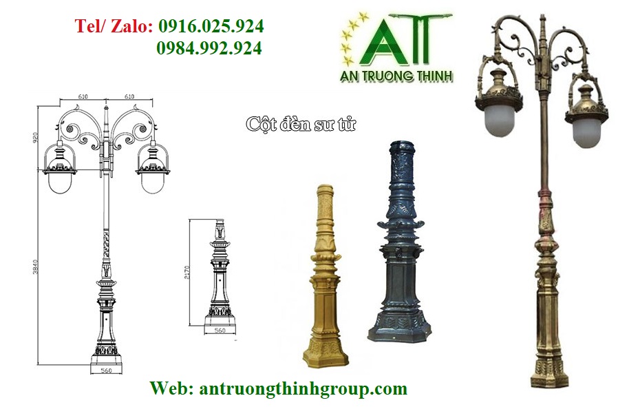 Công ty chiếu sáng An Trường Thịnh đơn vị chuyên sản xuất cung cấp trụ đèn chiếu sáng công cộng, trụ đèn chiếu sáng trang trí sân vườn, trụ đèn chiếu sáng trang trí công viên đô thị, trụ đèn đế được đúc bằng gang, bằng nhôm chất lượng.