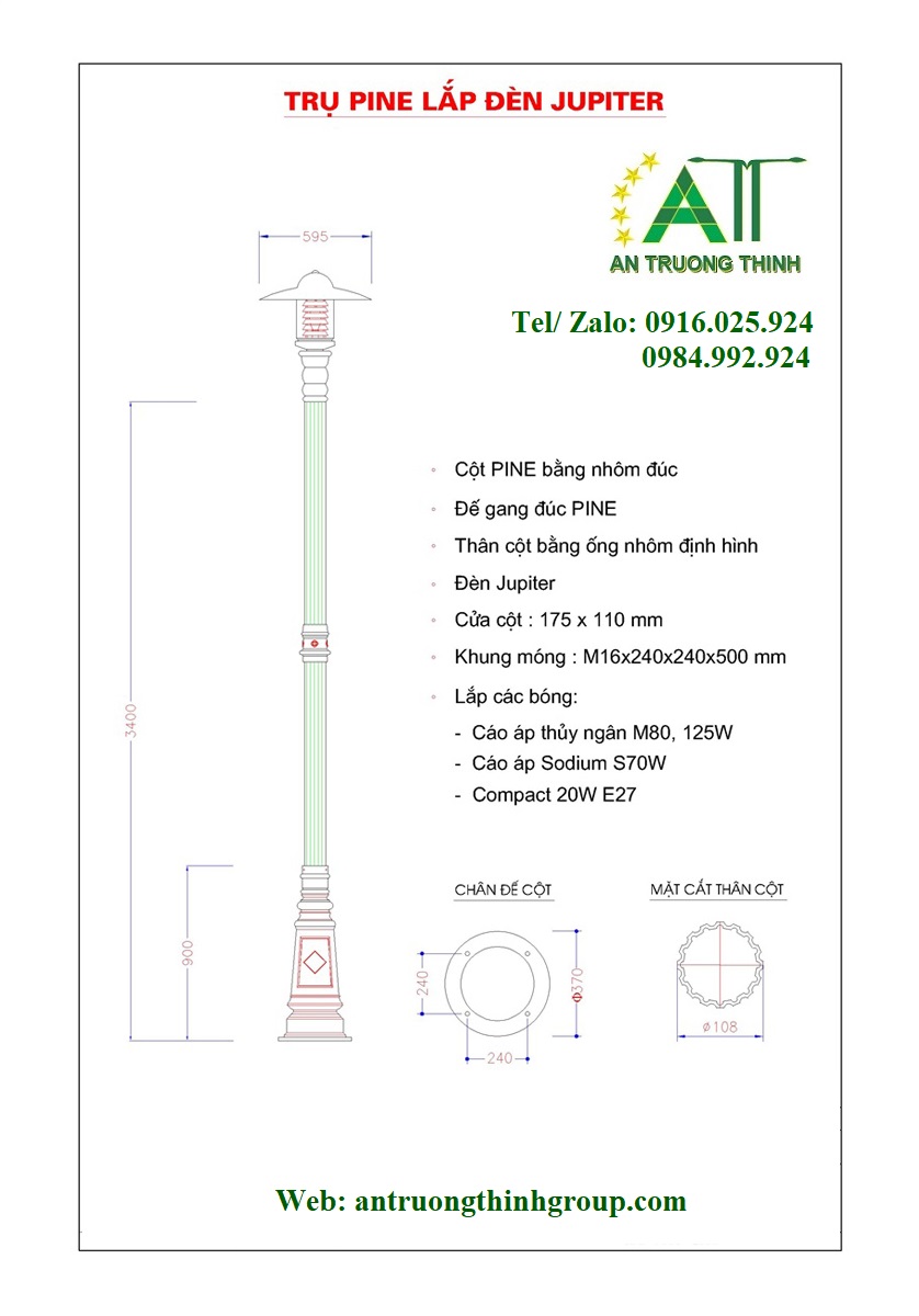 Cột Đèn Chiếu Sáng Đế Gang Pine Lắp Đèn Jupiter