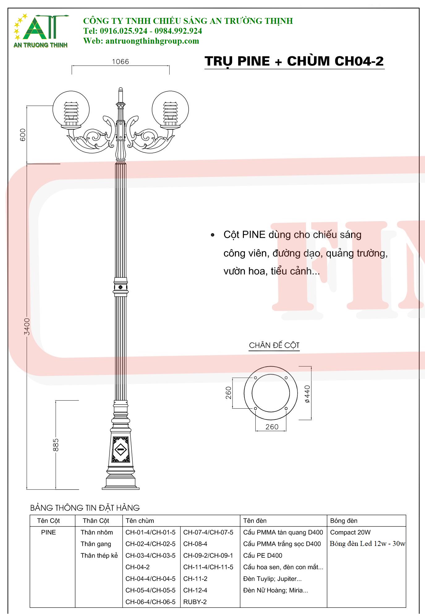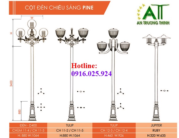 Trụ Đèn Sân Vườn Công Viên ATT-PINE-CH04