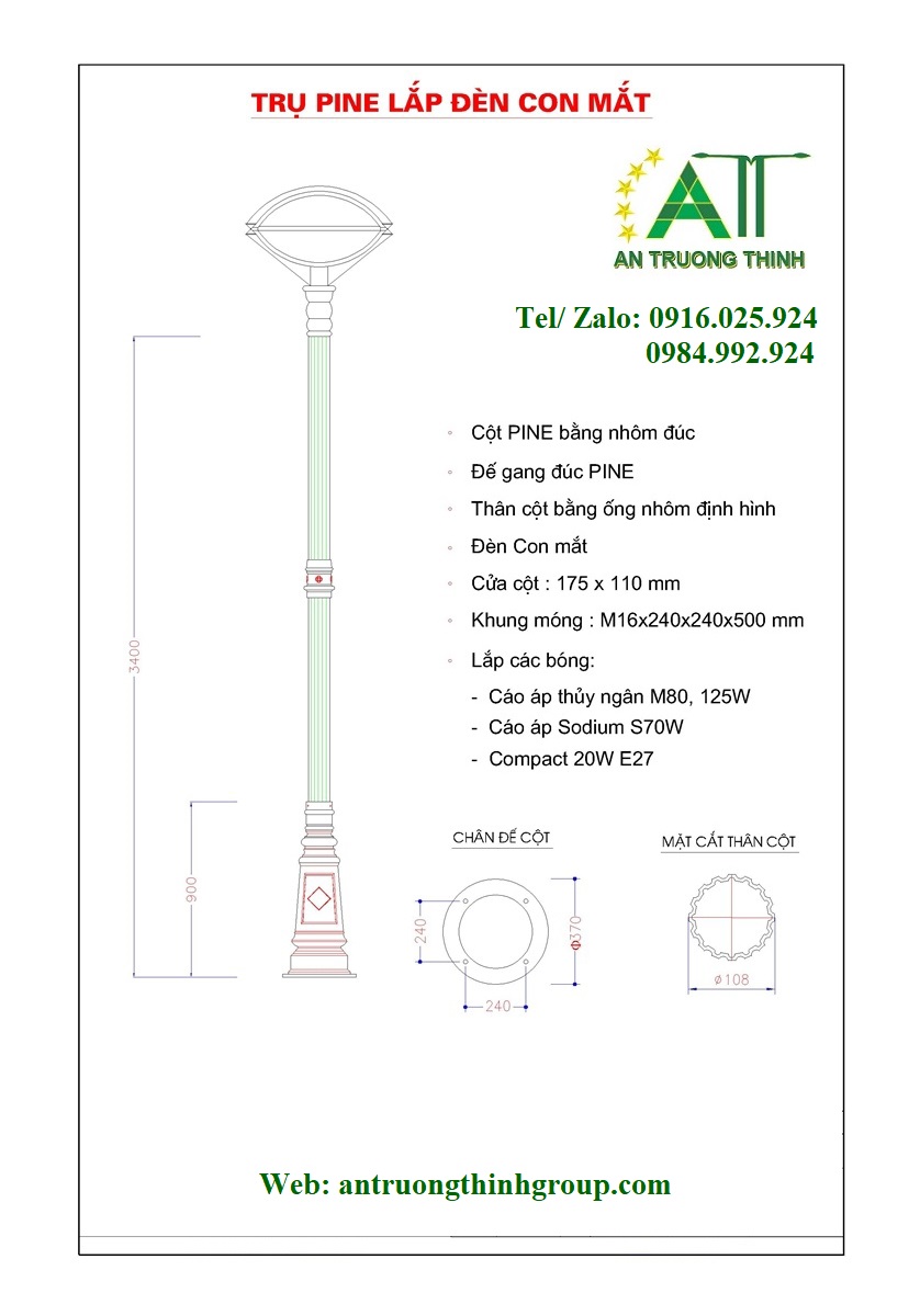 Trụ Đèn Chiếu Sáng Công Viên PINE Lắp Đèn Con Mắt