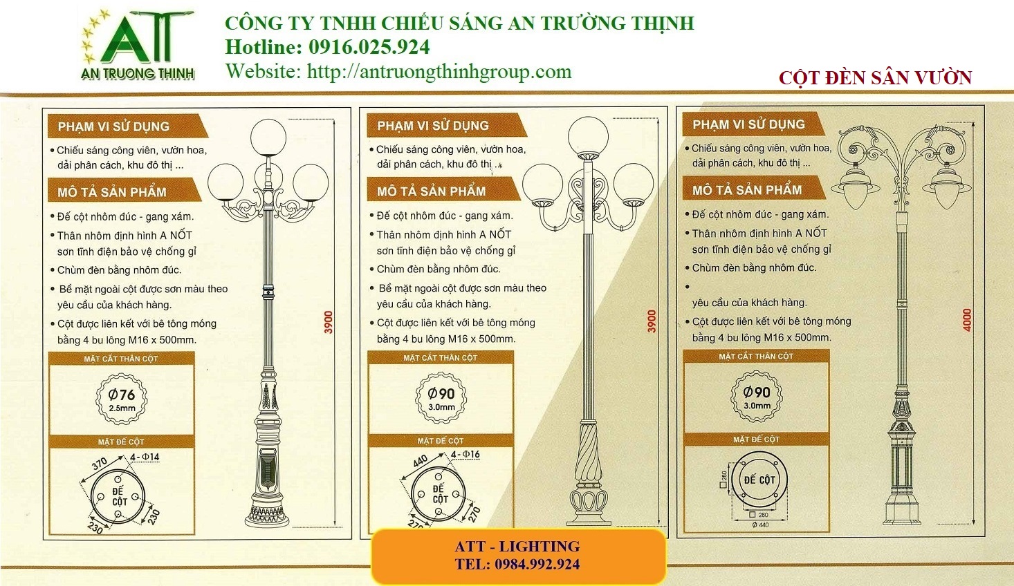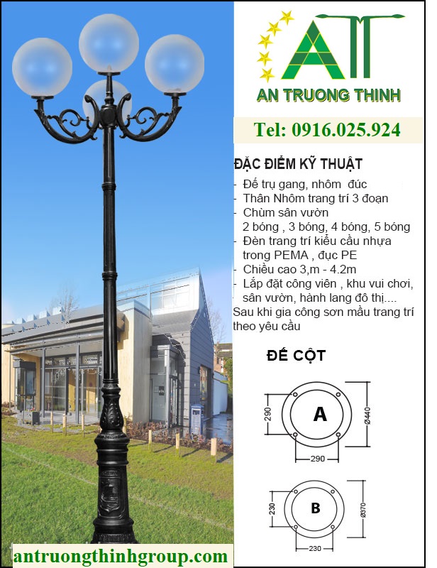 An Trường Thịnh - Cột Đèn Chiếu Sáng Sân Vườn Công Viên Đế Gang