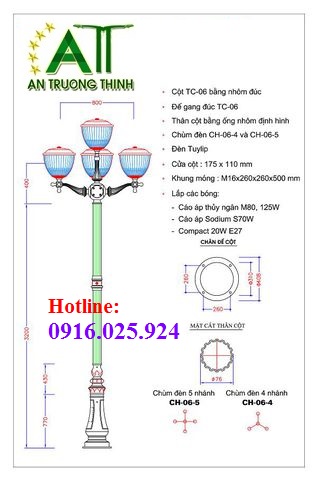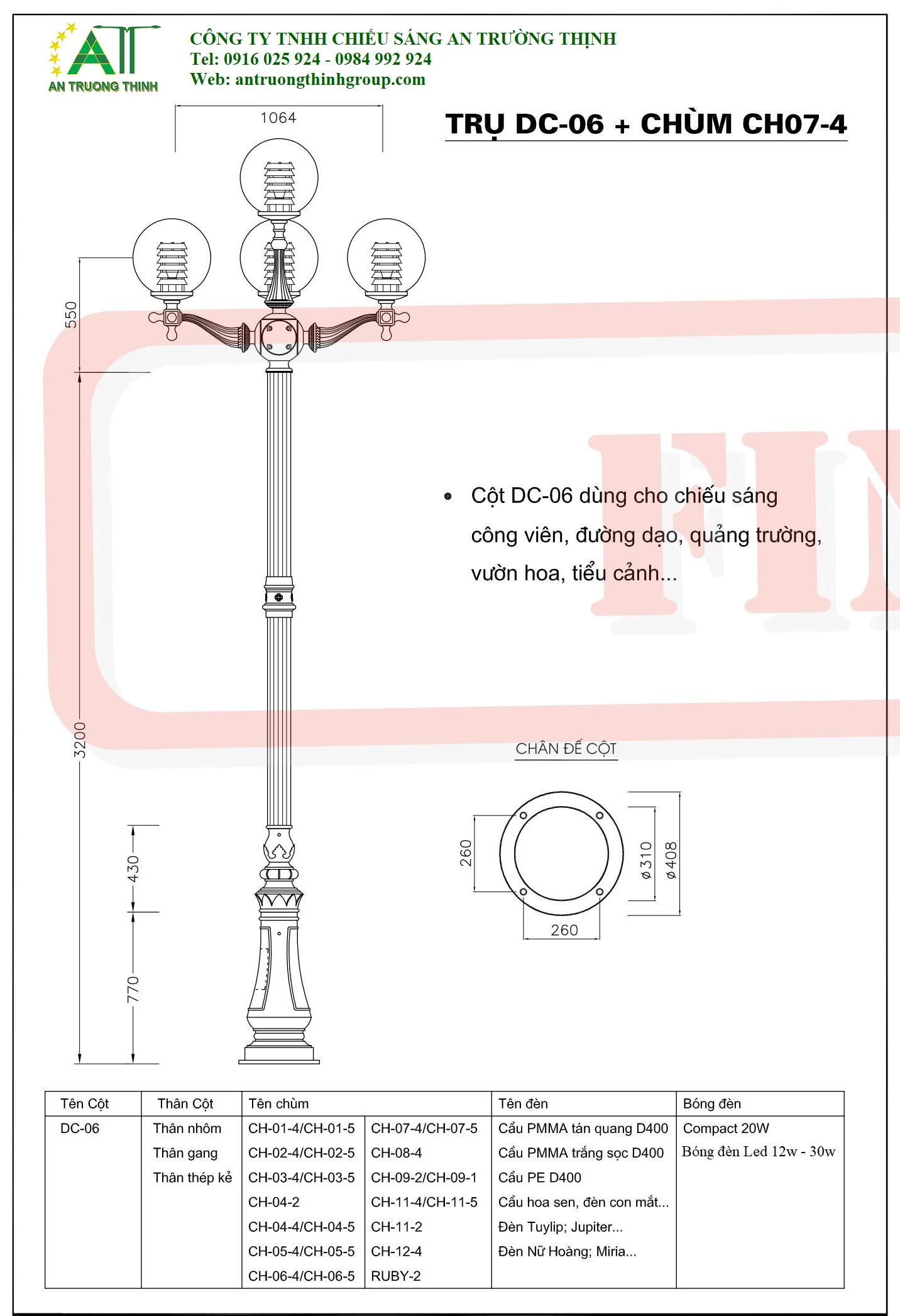 Cột Đèn Chiếu Sáng Sân Vườn Công Viên ATT-DC06-CH07