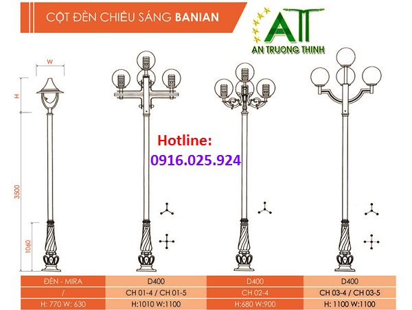 Cột Đèn Công Viên Đô Thị Banian (DC07) CH11-4 Cầu D400