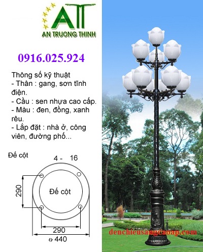 ATT Trụ Đèn Chiếu Sáng Trang Trí Sân Vườn 10 Bóng