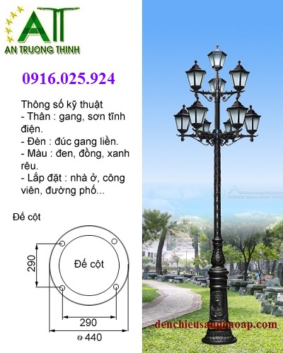 Cột Đèn Đế Gang Trang Trí Sân Vườn Đèn Led