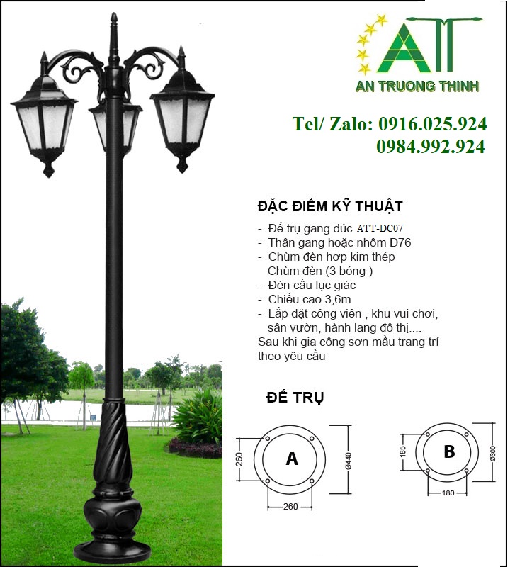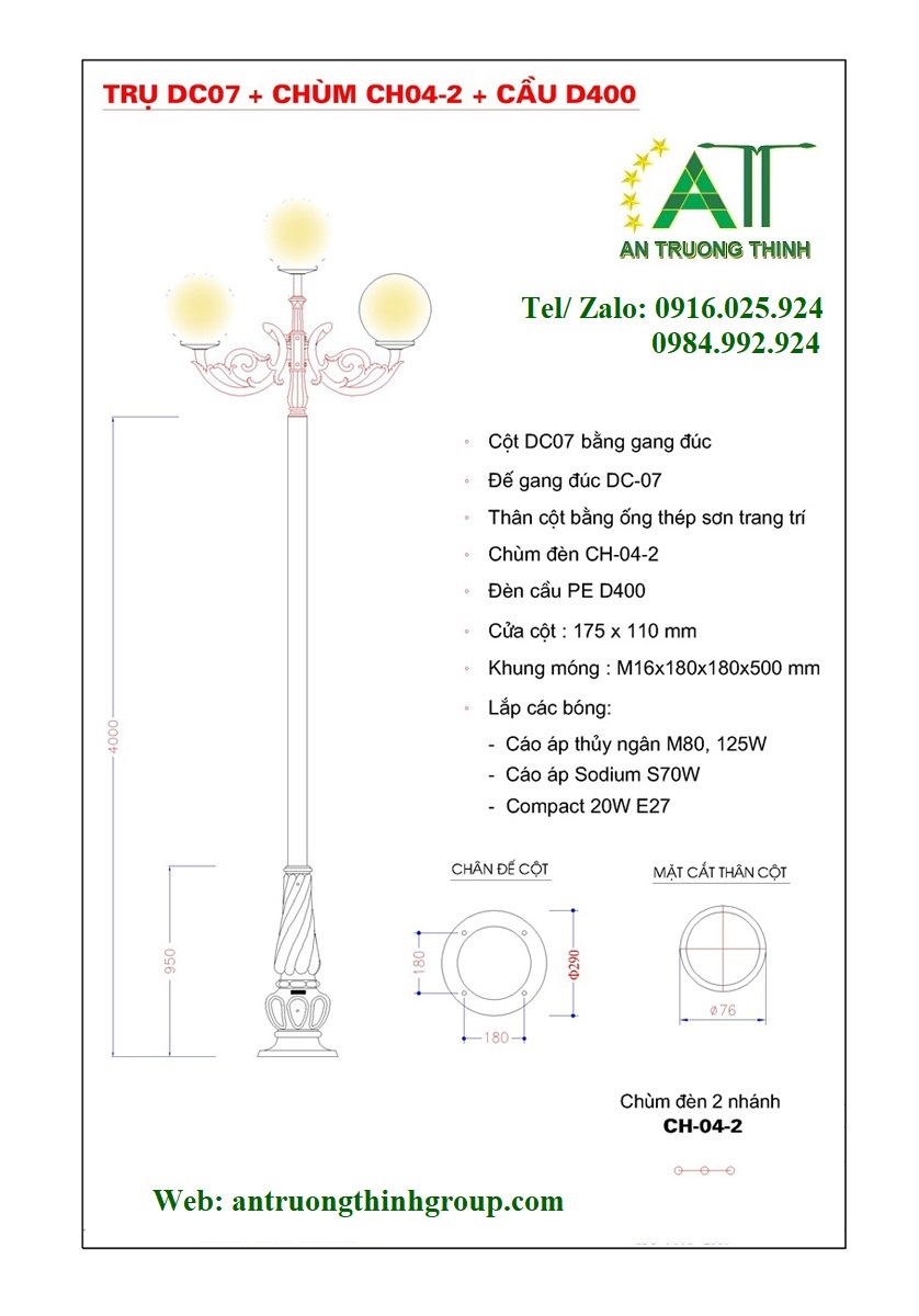 Cột Đèn Công Viên DC07 Lắp Đèn Cầu D300 D400