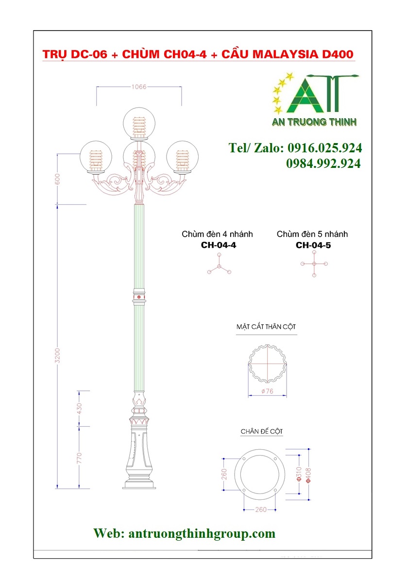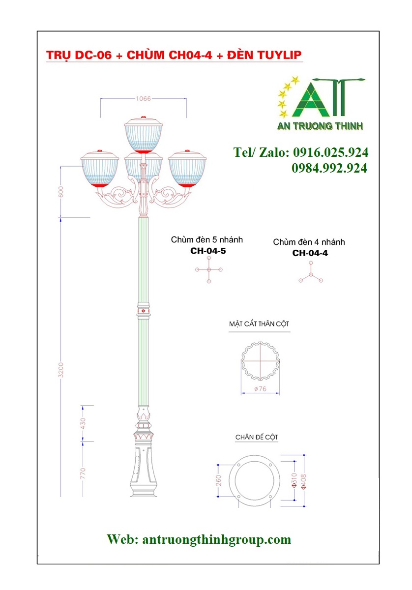 An Trường Thịnh - Cột Đèn Sân Vườn Đế Gang DC06