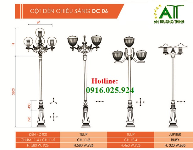 Trụ Đèn Trang Trí Công Viên Chiếu Sáng Đường Phố ATT DC06
