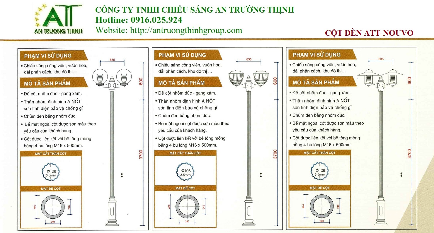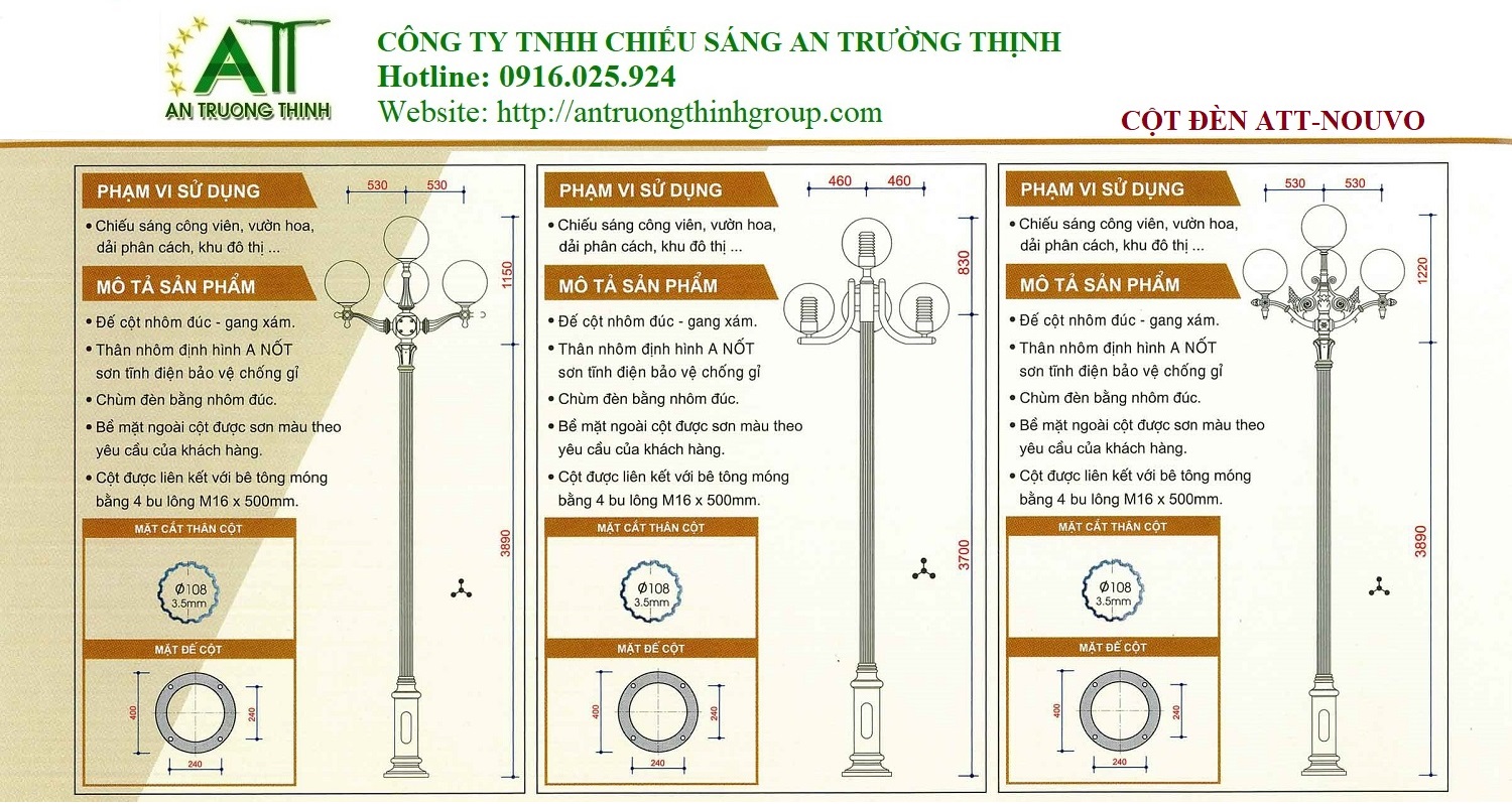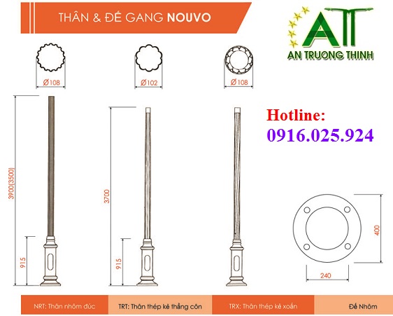 Trụ Đèn Sân Vườn Đế Nhôm ATT-Nouvo CTY An Trường Thịnh