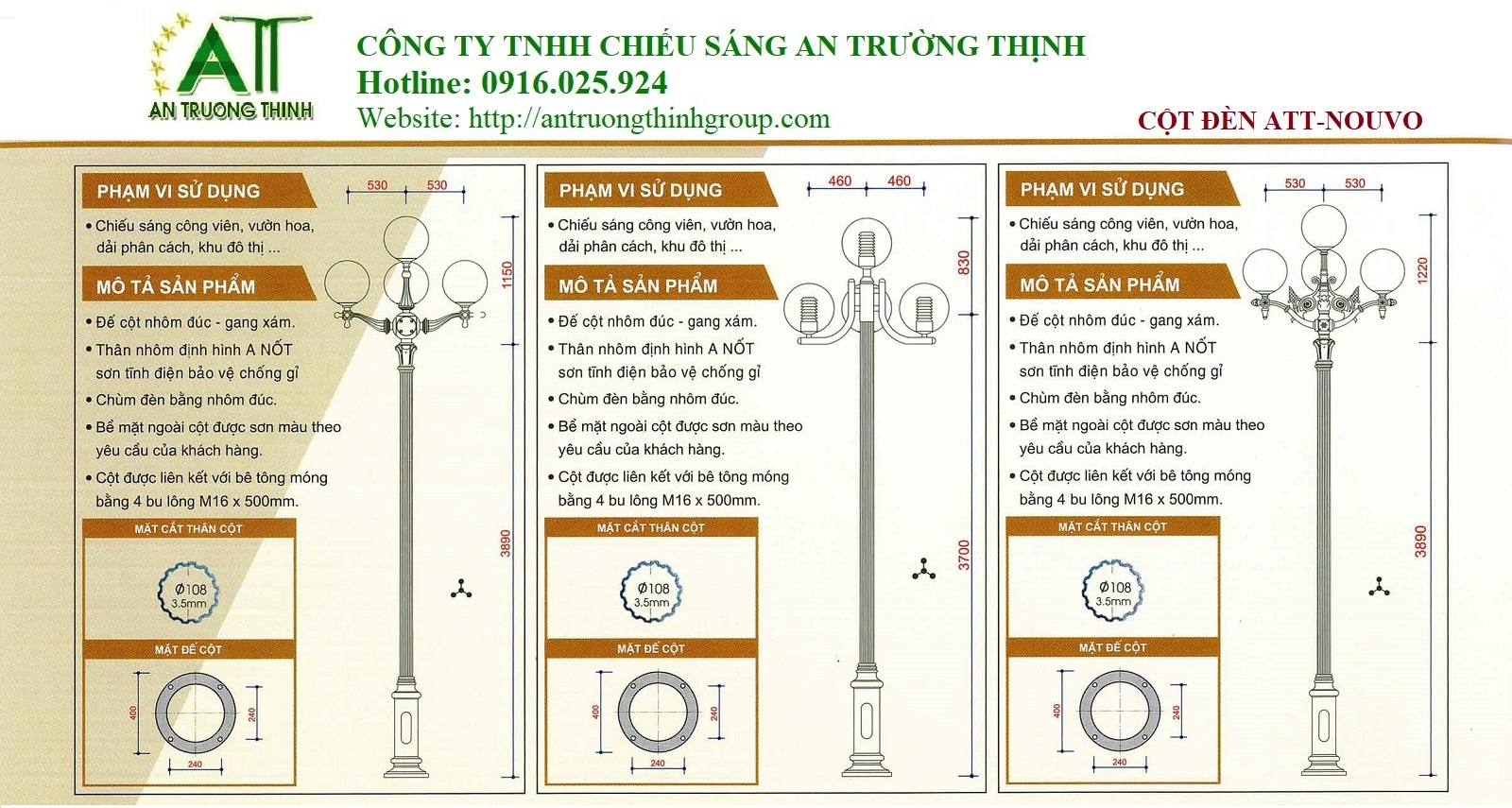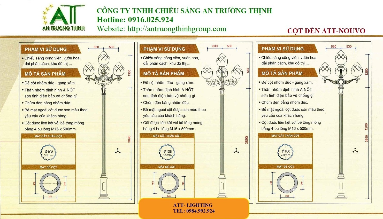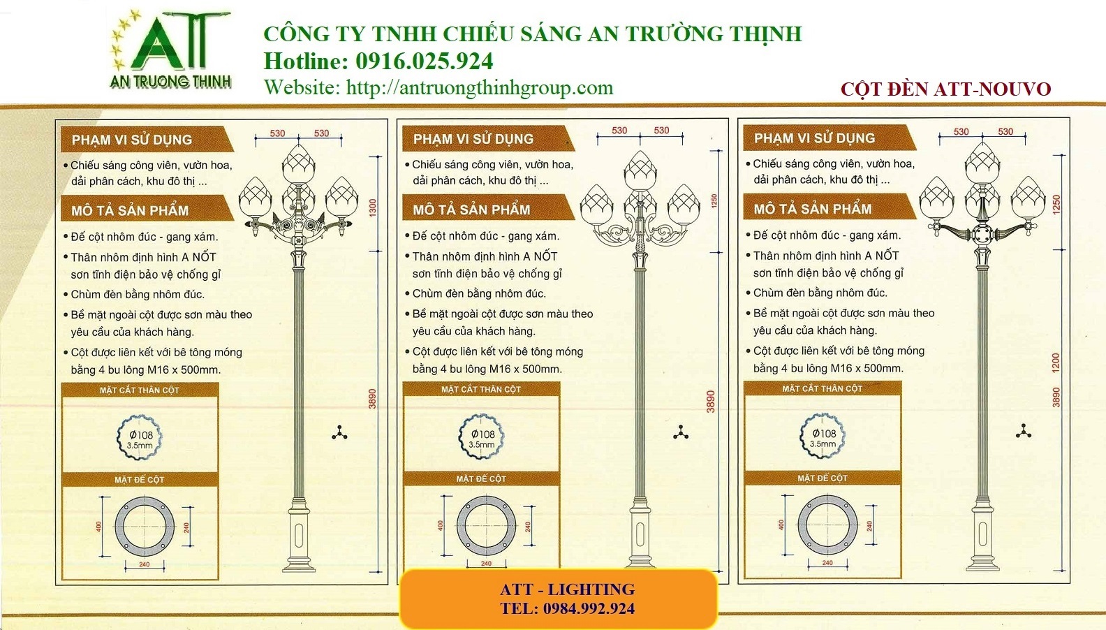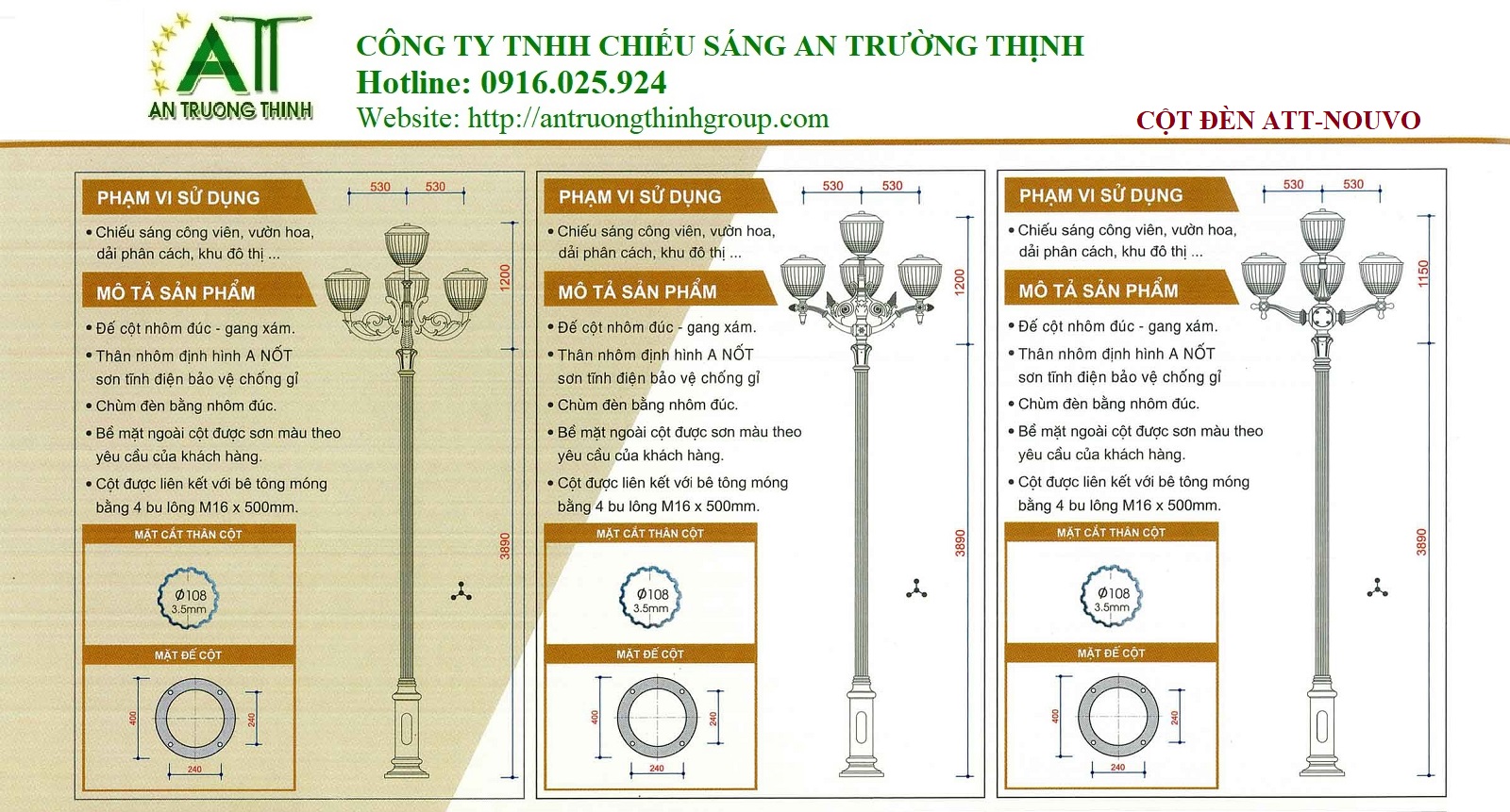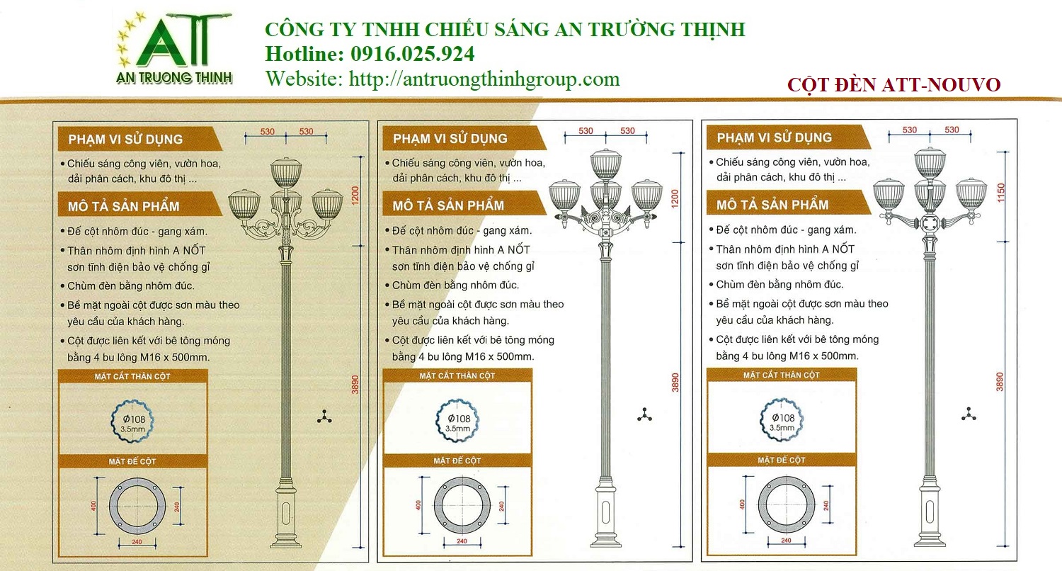 An Trường Thịnh - Cột Đèn Chiếu Sáng Đô Thị Đế Gang ATT-Nouvo