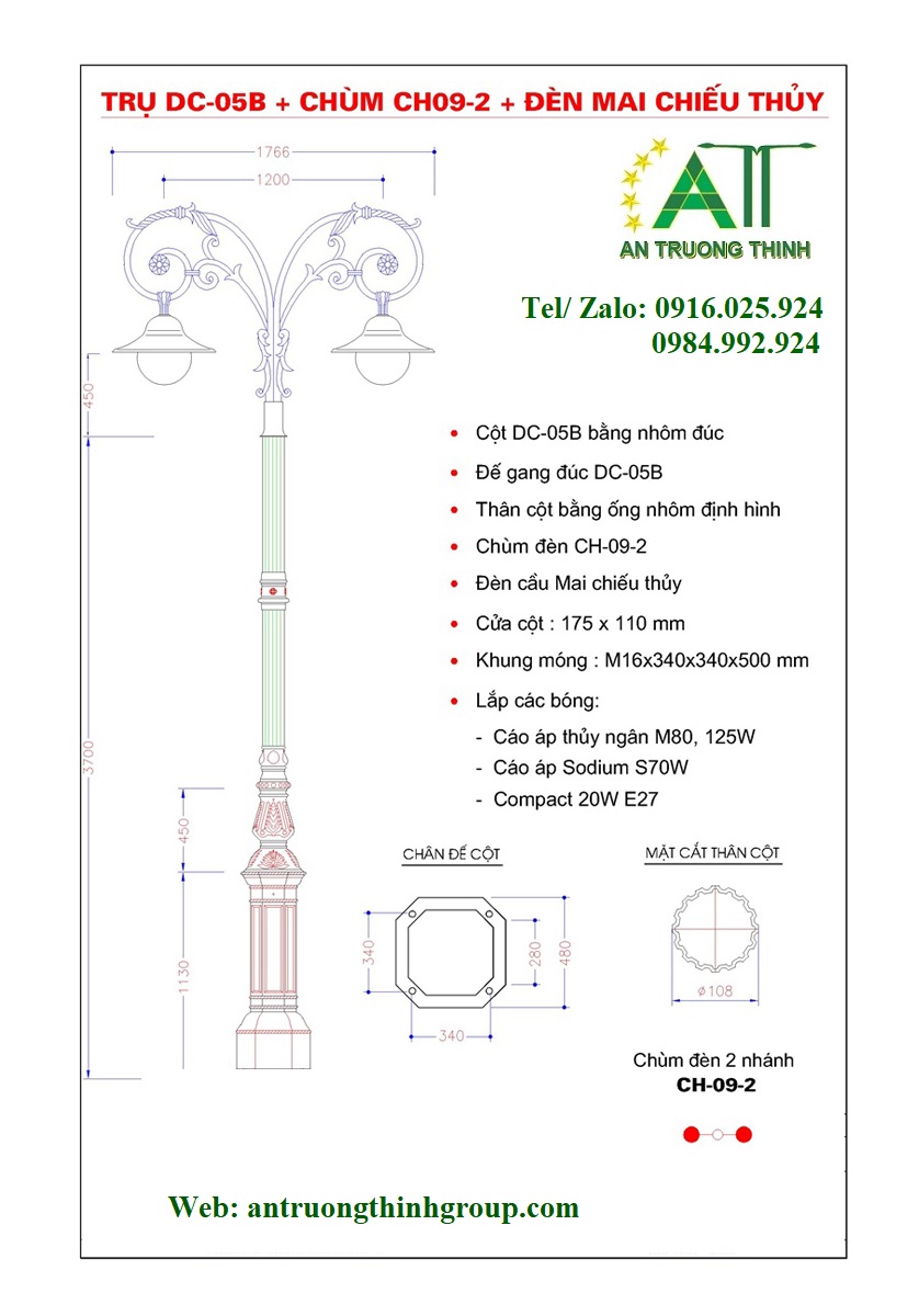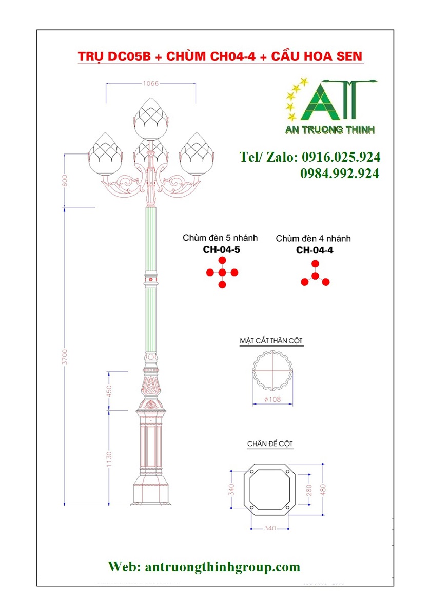 An Trường Thịnh - Trụ Đèn Sân Vườn Đế Gang DC05B Đèn Cầu D400