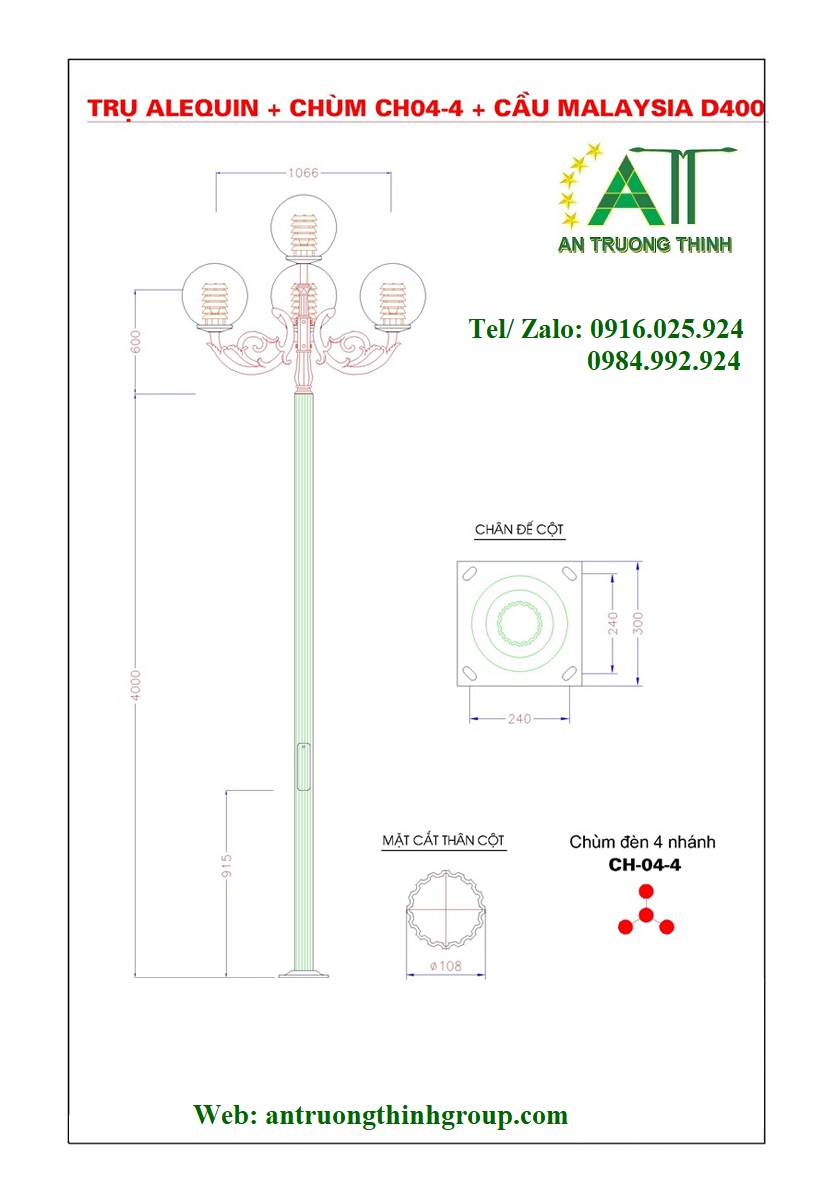 An Trường Thịnh - Trụ Đèn Trang Trí Arlequin Lắp Đèn Cầu D400