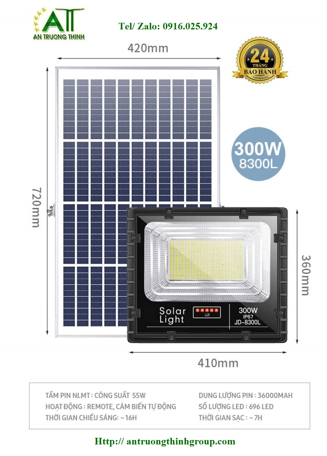 Đèn Đường Led 200W Solar Light Năng Lượng Mặt Trời ATT NLMT 300W