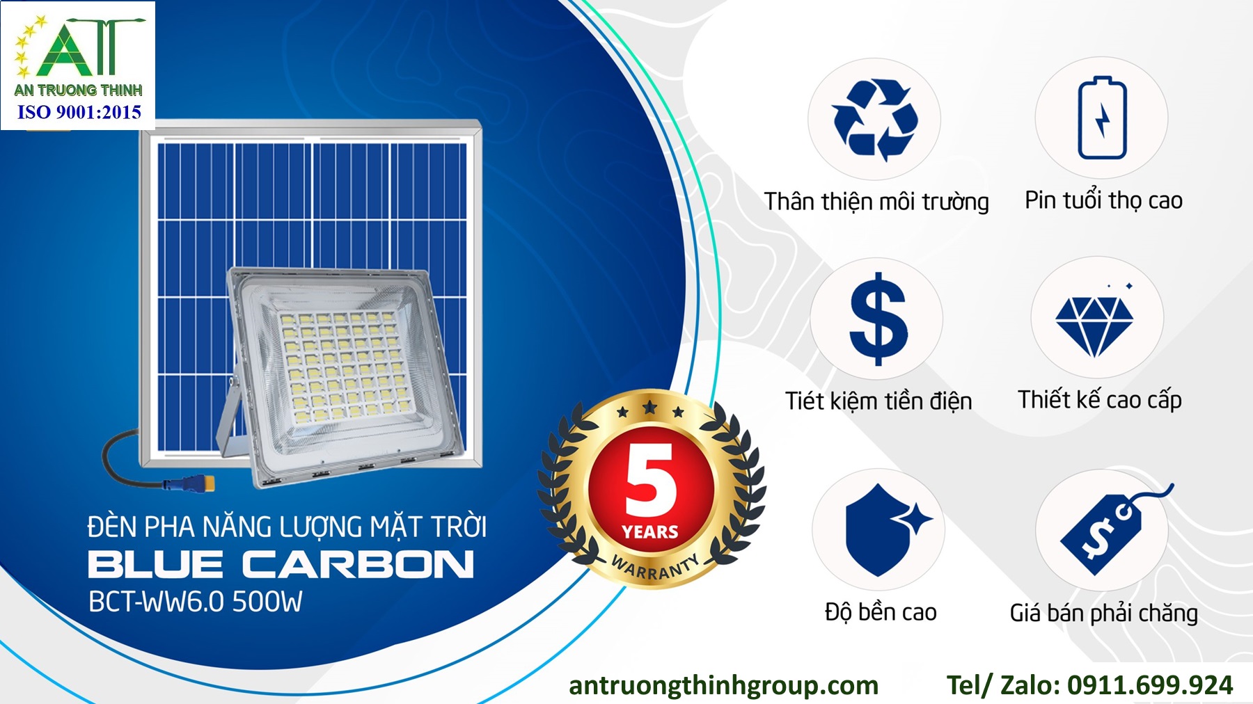 Đèn Pha Led Năng Lượng Mặt Trời 500W Blue Carbon BCT-WW60