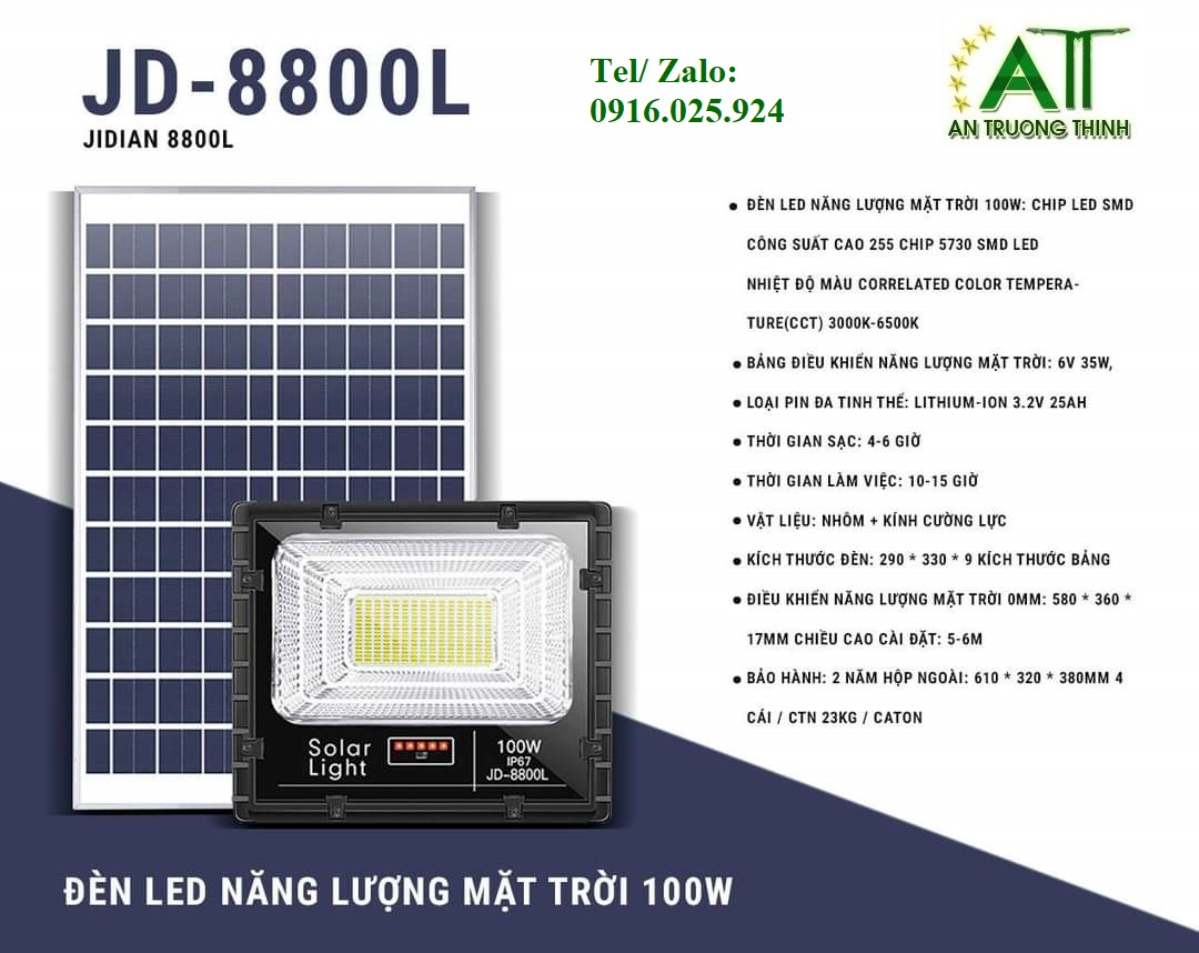 Đèn Pha Led Năng Lượng Mặt Trời 100W JD 8800L